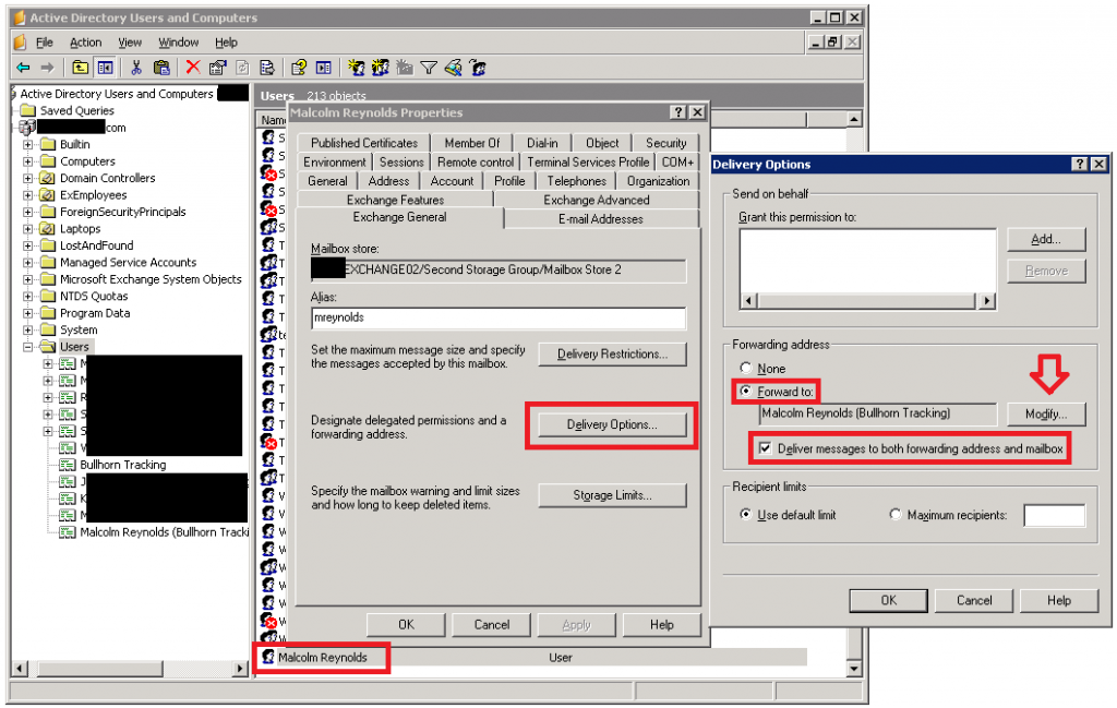 You’d think that would be that. We want to track both incoming and outgoing emails in Bullhorn, and Exchange 2003 is now forwarding both incoming and outgoing emails to your Bullhorn tracking address.